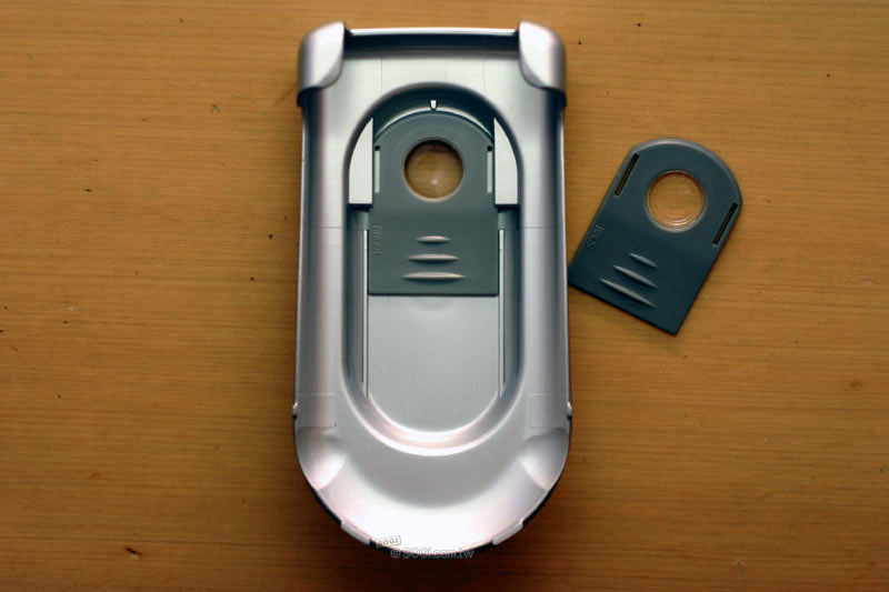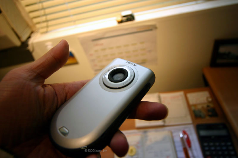 而整個背面,更有點像是雙面設計般,將背面當作是數位相機的正面來看,設計雖然簡單,但總是不能忽略它的存在,有效畫素是 123 萬,而可達到最高畫素 130 萬的 CMOS 感光元件數位相機,最大光圈可達 F 3.2,在光源不足的情況下,也可以輕易的拍出實景,當然雜訊會多了些。