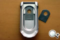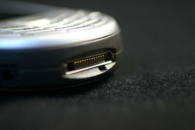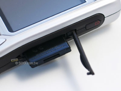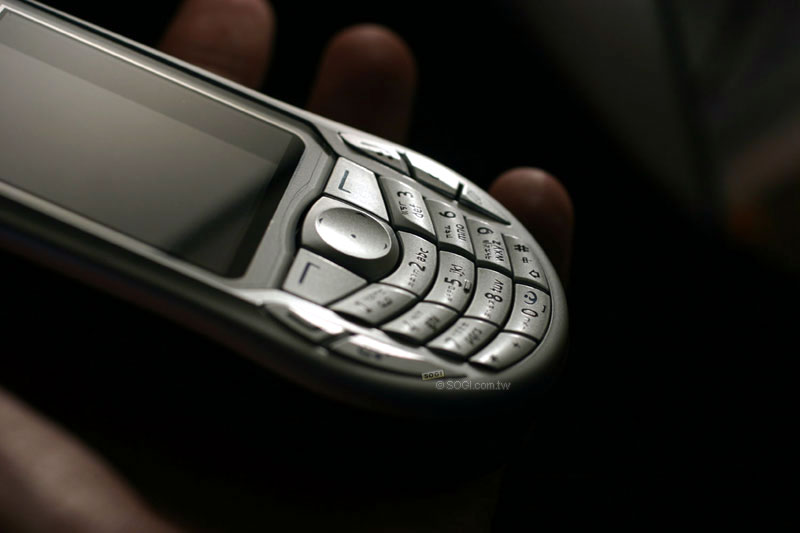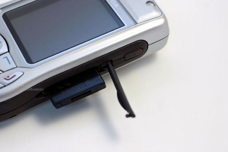 這次 Nokia 大膽的在 Nokia 6630 機頂上挖了個大洞,把揚聲器放在上面,讓使用者可以更貼近你的鈴聲,也比較不容易被蓋到。而機身旁邊的,右側是聲控鍵,顧名思義就是聲控指令及撥號之用的。而左側則是小小的開關鍵,把 6600 的開關鍵從機頂移到左側,而 RS-MMC 卡槽則在其下方,NOKIA 6600 則是在電池槽裡,不能「熱插拔」,6630 就可以了!(RS-MMC 卡槽除了可以直接讀取 RS-MMC 卡,也可以插入 MMC 卡,但蓋子蓋不上去,所以假如有 MMC 卡取要短時間存取的話,也可以直接插入即可!)