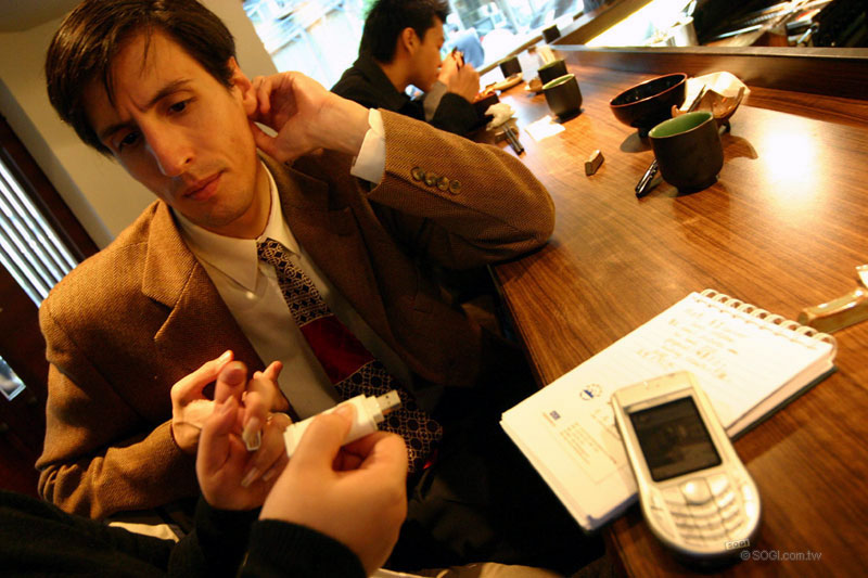 Nokia 6630 算是比較 MAN 的手機,所以對於手掌較大的男性朋友,算是很適合的設計,下端圓弧狀更符合人體工學,怎麼拿就是帥氣啊!呵~