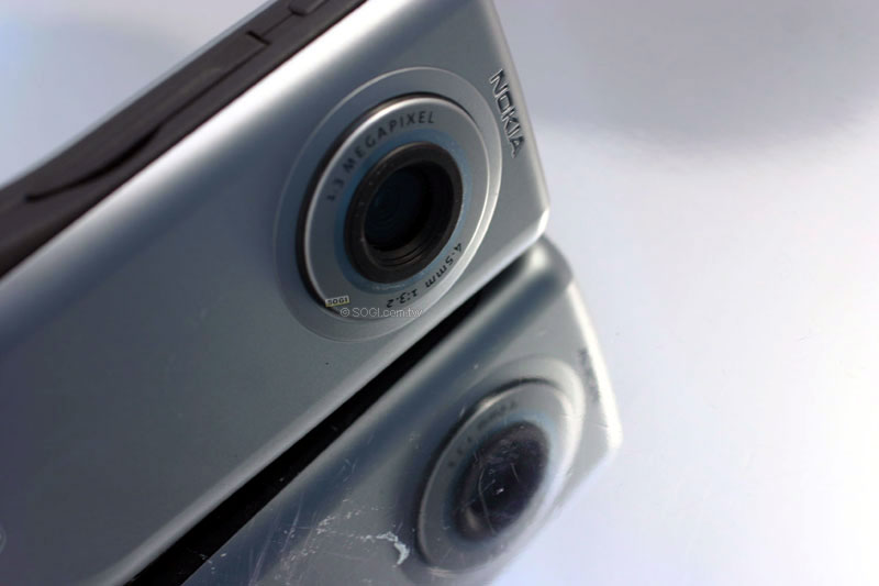 光看外型,我們可以整理出它有哪些手機的影子,輪廓上就像 Nokia 3650 般;旁邊防滑條的部份就有如 Nokia 6600 的樣子,而背面相機的部份,有點像來自於 6600 但又加又改良,放上了膠皮保護鏡頭也擁有防滑的效果;而鍵盤的部份就如 6670 一樣,Symbian 鍵盤的排列、五向鍵設計,都來自於同一個模組。