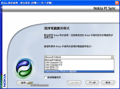 其中同步處理項目,可以與 Microsoft Outlook, Lotus, Lotus Notes, Outlook Express 等軟體來進行同步,我想這是許多使用者都好奇的地方,畢竟能與自己常用的收信軟體來同步自己的使用者或是行事曆等,是一件令人高興的事!
