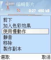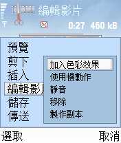 影音工具,就是除了相機以外的多媒體工具,都在這裡了,其中錄音機的功能可以錄製一分鐘的聲音檔,但可惜的是不能通話錄音。另外內建的 RealPlayer 當然是可以播放各種的影音檔案;影片編輯則是可以將影片插入各種影片加入慢動作、靜音或是加入色彩讓影片可以慢慢消失無形!!