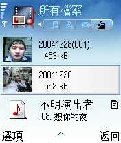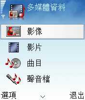 看重多媒體功能的 6630, 除了影像拍攝,後續的功能當然也不能少,而在「多媒體資料」這項功能裡面,就可以將所有的多媒體資料進行分類,也可以同時預覽來讓使用者更方便的執行、觀看這些多媒體檔。而有哪些分類呢? 如上圖所示,共可分為影像、影片、音樂曲目、聲音檔以及網路連結。