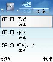 世界時鐘的設定,除了有一個居住城市的設定,還可以自訂多個城市來供作對照之用。