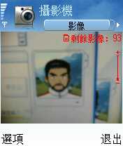 Nokia 6630 在數位相機的要求,在這裡可以看到,雖然內建的特效及圖案比較少,但高畫質的表現還是比較重要!!在「攝影機」這個功能裡,可以進行動態及靜態的拍攝,在拍攝的畫面右上面還有提醒剩餘容量或時間的顯示。