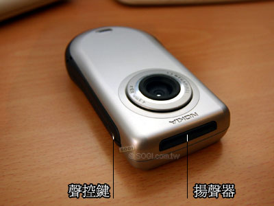 Nokia 大膽的在 Nokia 6630 機頂上挖了個大洞,把揚聲器放在上面,讓使用者可以更貼近你的鈴聲,也比較不容易被蓋到。而機身旁邊的,右側是聲控鍵,顧名思義就是聲控指令及撥號之用的。而左側則是小小的開關鍵,把 6600 的開關鍵從機頂移...