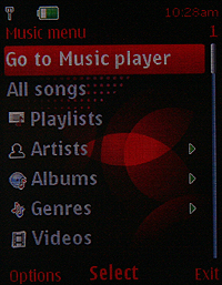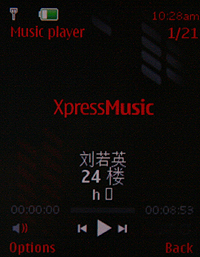 上面幾張螢幕圖便是左右滑動 Nokia 5610 XpressMusic 的「滑梭式音樂軸」時,螢幕畫面上所立即顯示的功能畫面,從上圖可清楚的得知,此「滑梭式音樂軸」似乎是 Nokia 5610 XpressMusic 另類的音樂功能啟動快捷鍵,除了呼叫出 MP3 音樂播放的相關管理介面之外,連 FM 收音機介面亦可快速的「滑」出來!
