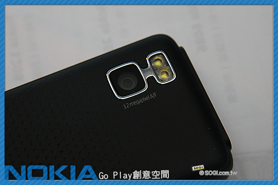 在 Nokia 5610 XpressMusic 機身背面便是其 320 萬畫素自動對焦鏡頭,除此之外,在鏡頭旁邊還特別設計了兩顆雙 LED 閃光燈,在光線不足的環境下拍攝,影像將會更加清晰許多。除此之外,Nokia 5610 XpressMusic 的揚聲器位置亦設於機身背面。