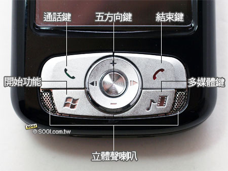 Xda Atom 的下方操作鍵盤集眾多功能於此,五向控制鍵除了可移動螢幕內功能,還可在播放音樂時進行「上、下一首」以及音量的控制。而右下角還有個多媒體鍵,想要音樂或影片播放,一指功能方便到家。另外最值得一提的便是其立體聲喇叭的設計,音量可自由控制,也同樣給予使用者更寬廣的音樂感受,音樂動人不該只是作曲者的責任。