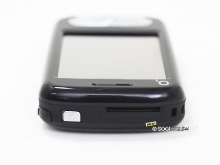 而機身頂上則是 miniSD 卡插槽的位置,以及左方銀色的按鈕即為「電源鍵」,設計簡單且大方。