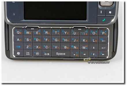 將 Xda Zinc 的滑蓋向左開啟後,就會看到與電腦一樣的 QWERTY 鍵盤,當然採橫向滑蓋鍵盤的原因,也在於新的 Windows Mobile5.0 作業系統可以將螢幕以橫向方式操作的緣故,方便輸入中英文,不過也讓原本體積就不小的 Xda Zinc 顯得更大隻了。