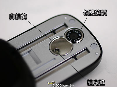 OKWAP A236 內建 30 萬畫素數位相機,相機鏡頭隱藏在上滑蓋背面,此外,在相機鏡頭的正下方是可供自拍者參考取景用之自拍鏡,在自拍境的下方則設置一顆強度相當強的補光燈,OKWAP A236 的相機規格與配備設計可說是相當完整的。