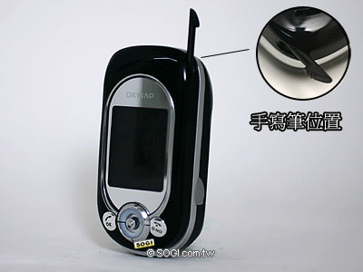 OKWAP A236 除了外型非常精緻小巧之外,其特殊的炫藍色手寫鍵盤設計更是一絕。要撥打電話時,使用者只要透過置於手機右上方的手寫筆,輕輕的點觸手寫鍵盤上的數字,螢幕畫面上馬上很迅速地跑出所點選的數字。此外,使用者亦可以在功能選單下,透過點選子功能上的數字,亦能馬上進入該功能選項中,非常便利!