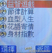 此外,OKWAP H105 亦內建幾組休閒遊戲功能,消費者除了可以打發閒暇無聊時光之外,還可以利用 OKWAP H105 準備的貼心護理小工具,大概估算一下自己的健康狀況,身材比例是否走樣...等。