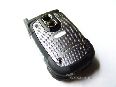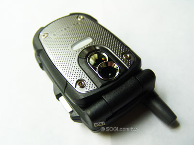 相對於X66圓滑精巧的外型設計,Panasonic X77看起來則有著威武雄邁的男性氣魄。但是和X66一樣沒有外螢幕的設計,使用時真是有點不便!X77的上蓋鏡頭下面,有提供各種資訊的五彩閃燈。