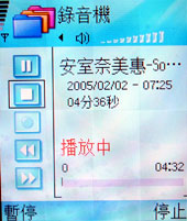 此外,Panasonic X700更有強大的軟體外掛功能,使用者只要下載Symbian 7.0 (series 60)相容的應用程式,MP3播放、MSN即時通、網頁瀏覽(www)、Java遊戲軟體….等通通沒問題,上圖就是小編利用 MP3 外掛程式欣賞 MP3 音樂的螢幕照片。此外,除了可下載許多多媒體影音外掛程式之外,Panasonic X700 手機還搭配超強功率喇叭,無論是來電答鈴、聽音樂或者是動畫欣賞,Panasonic X700 都能將最真實音韻加以播放!