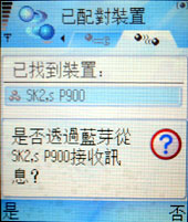 藍芽功能也是 Panasonic X700 的重點之一,我們以 X700 跟 Sony Ericsson P900 做實際傳輸,先將藍芽開啟連接,等候 X700 搜尋到 P900 後,即可直接將所要的檔案傳送至 P900 手機中,使用 P900 與 X700 在做藍芽傳輸時非常順暢並未出現延遲現象。