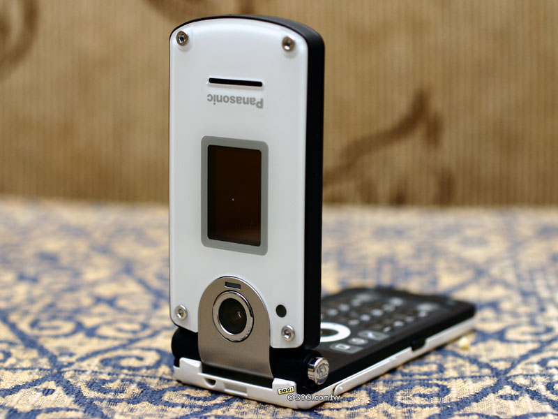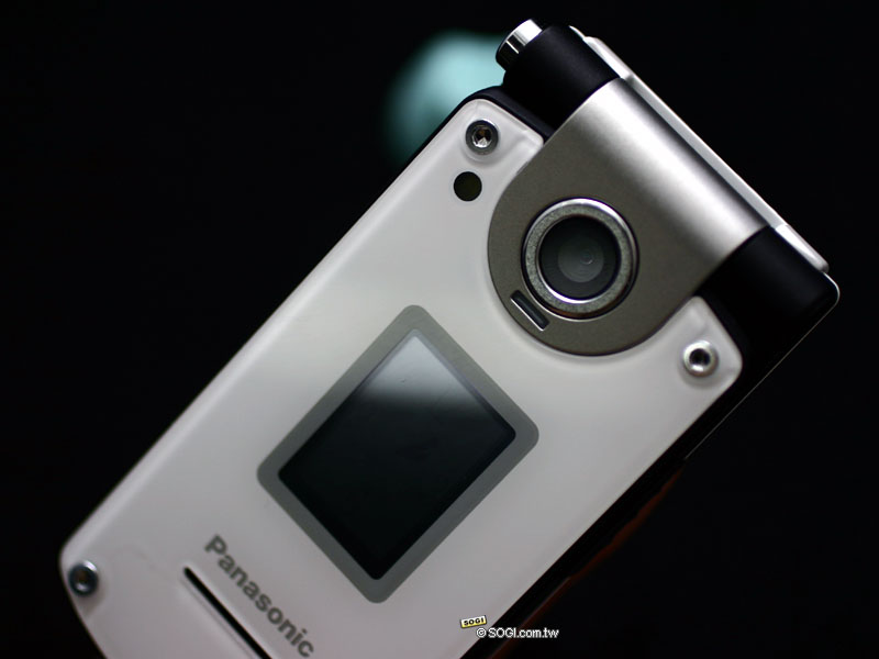 Panasonic X800 的超薄外型,也有許多機關及功能。紅外線設計在上蓋的前端,與部份日系手機一樣,而 X800 正面螢幕下面則還有一個揚聲器,所有的音效及音樂鈴聲都從這裡發聲。內建的 30 萬畫素鏡頭,就在正面的上緣,經過設計人員的巧思,與其質感外型相搭,既簡單又有風格,鏡頭旁還有一個閃光燈,可以獨立作業的閃光燈,用途就是手電筒。