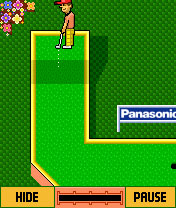 Panasonic X800 內建兩款遊戲,一款是高爾夫球的遊戲,有不同的關卡可以選擇,只要用使左右鍵來轉動畫面上的虛線,也就是擊球的方向再決定力道便可以將球打出去了,來試試一桿進洞吧!!