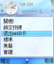 而這麼多的多媒體功能,當然需要一張高容量的記憶卡來裝這些東西,所以 miniSD 卡就有用處了,Panasonic X800 可以支援記憶卡熱插拔的功能,但為了保護記憶卡裡的資料,在抽出記憶卡時,最好能按一下電源鍵來選擇「退出 miniSD 卡」,再抽出記憶卡。