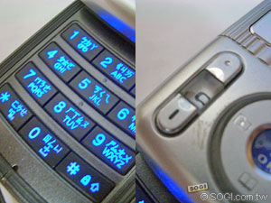 有好就有壞,滑蓋機的致命傷:前蓋過大以致於按鍵空間不足,也在 PG3000 上看到。數字按鍵一字平行排開,並無任何突起分隔,在撥按時容易誤觸。而主功能鍵則分設於機蓋左右兩邊,過小的按鍵實在很難操作,更別提「C」的清除鍵是設在功能鍵與接聽鍵的中間了,太容易在操作時跳出原有視窗。使用者得多些耐心適應按鍵的排列方式才行。