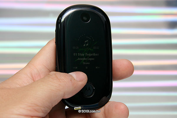 還記得 U6 宛如隕石般撞擊地球的畫面嗎?廣告的創意非常新鮮,也間接證實了我們揣測 U6=石頭的想法。沒錯,PEBL 系列又重現江湖,後代 U9 就像是顆精緻的鵝卵石,從霧面變成鏡面,帶來光滑無暇的指尖觸感,不變的是,它依然擁有 PEBL 一貫的圓弧機身和扁薄造型。外螢幕和 V8、V9 一樣,具備播放器功能,由此可看見手機著重的音樂元素。看似平整的 OLED 螢幕,就像隱藏於外蓋的鏡子,操作時會顯示播放介面,下方備有操作熱鍵,一碰就感應。