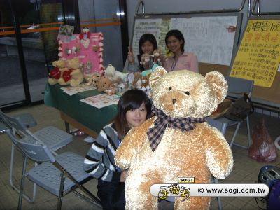 廠商特地借給系學會擺攤用的超大型熊熊,因外形可愛討喜,毛茸茸摸起來很柔順,故受到所有女性同學的青睞,為此次熊熊傳情活動增添不少人氣與買氣。最大願望是每天都有可愛的女生抱它。 |