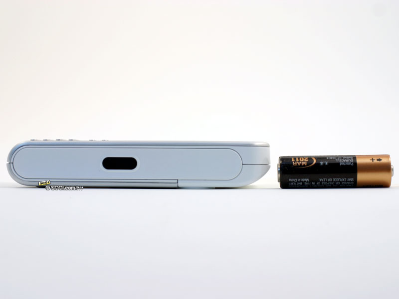 正面的 SAGEM my X-8 看起來真的很不錯,但小編個人認為它的厚度就偏厚了點,看下圖與 3 號電池合照,就可以明顯的看出它的「份量」。另外一點就是五方向鍵不是很好操作,可能是小編的手太粗的原因吧!不過以它的高畫質螢幕,我覺得可以把這些忽略掉,因為真的很優!!與 SHARP 獨門技術 CG Silicon 有得拼!但不曉得 SAGEM my X-8 的 LCD 的上游廠商是哪一家…