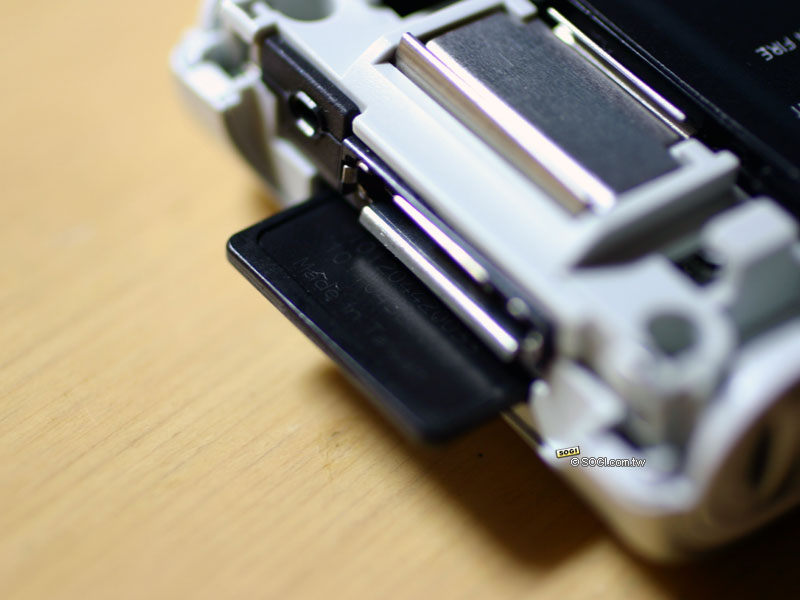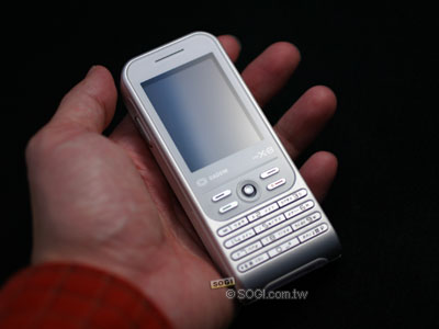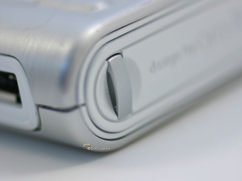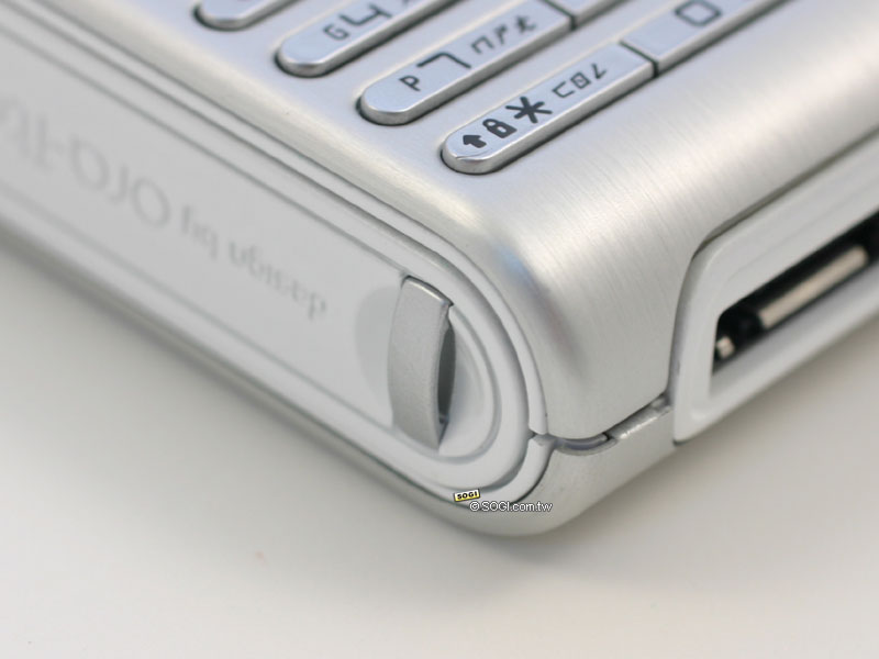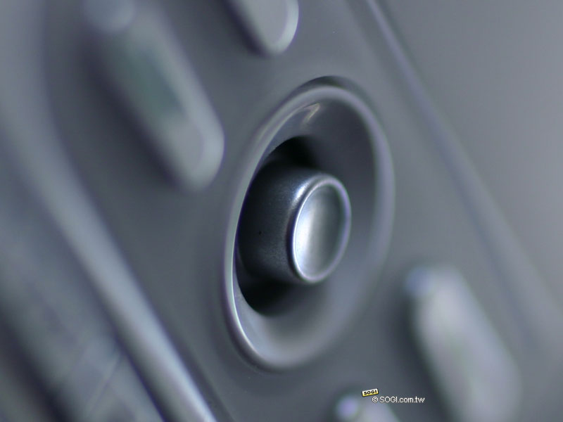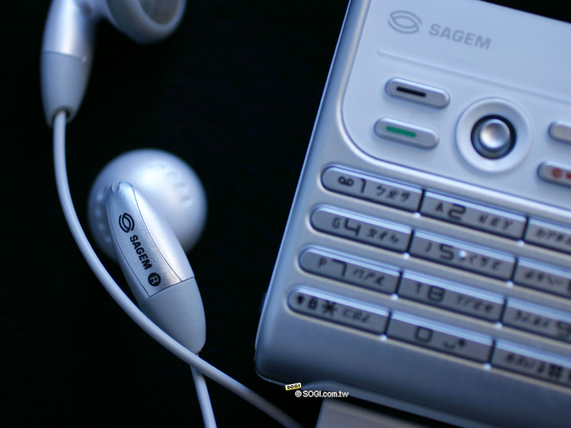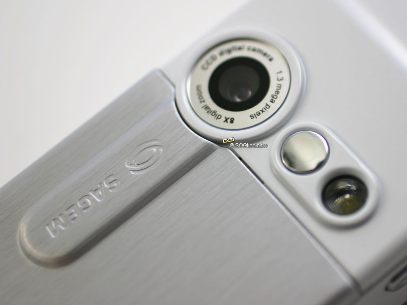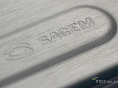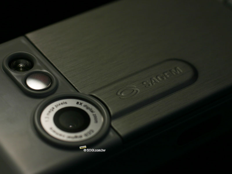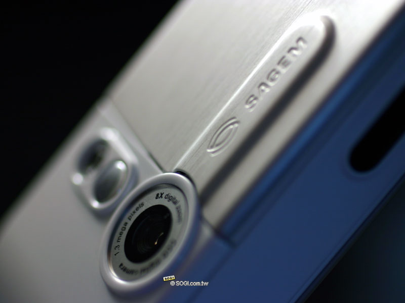 金屬外殼的電池蓋,質感佳,突出來一小塊刻著 SAGEM 的 LOGO,除了有保護鏡頭之用外,也充滿高品味的質感。這是一個品牌經營的故事,也是邁向 2005 年新里程碑的開始。另外要提的一點就是,它的背蓋很有安全感,意思就是還滿牢固的,有點像 SE T630 的那麼紮實,與很多薄薄的手機電池蓋相比,覺得會很有安全感!