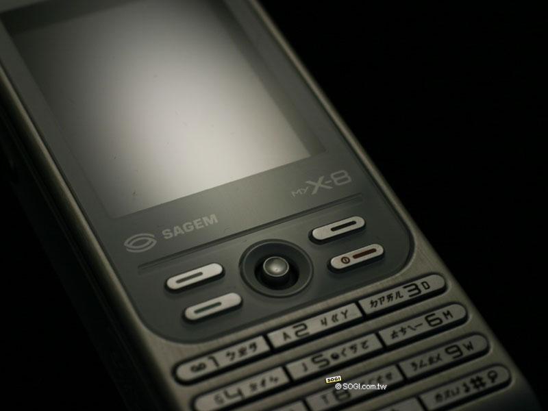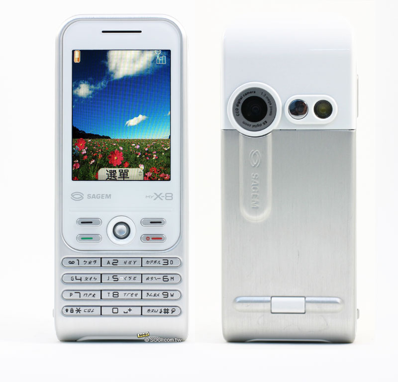當所有人都注意日系手機螢幕還有相機的高標準之時,法國的手機廠牌 SAGEM 也突破僵局,創造了 my X-8 這款優質手機,除了擁有 240 x 320 pixels 的 2.2 吋 TFT LCD 高規格螢幕外,也同時擁有 130 萬畫素的 CCD 感光元件數位相機,並擁有多模式拍攝以及八倍的數位變焦功能,當然還有 H.263 格式的無限時間動態錄影,這種高規格的手機,已經不再是日系手機專屬的,而且重點是價格也相當的友善,官方的建議售價是 NT$ 18,800 元。