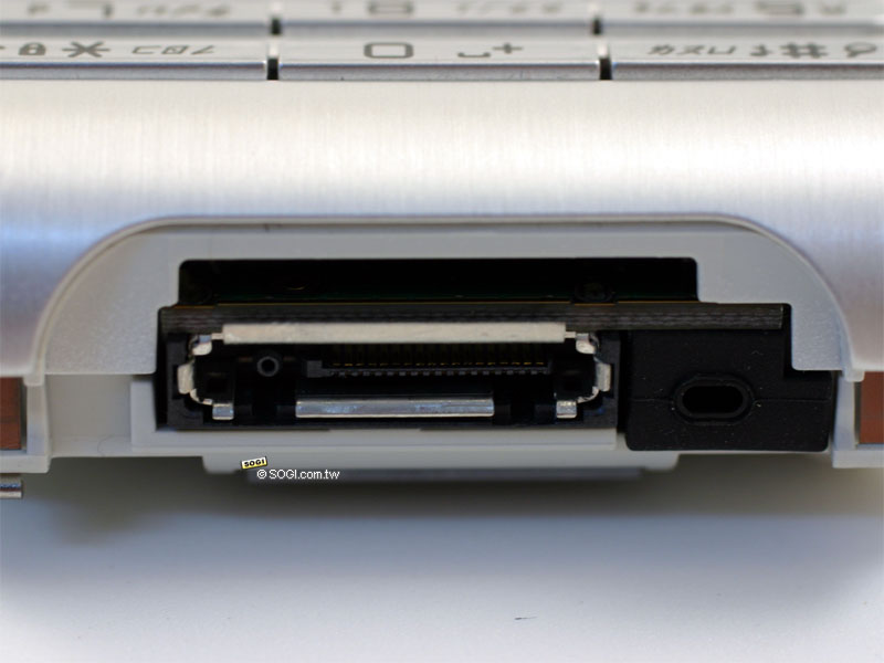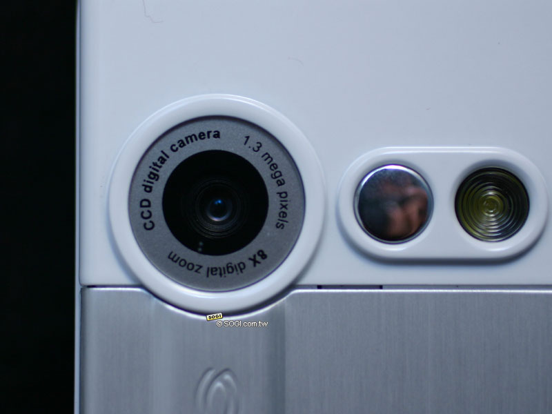 看完了整體設計,我們來看細部的介面,正面的鍵盤等都已經先看過了,除了小編覺得稍小之外,沒有任何意見。而背面則是它的外型滿經典的地方,除了有百萬畫素的鏡頭,還有自拍鏡以及亮度很亮的閃光燈,不過它的閃光燈不能像 SHARP 一樣可以持續的發亮當手電筒用。