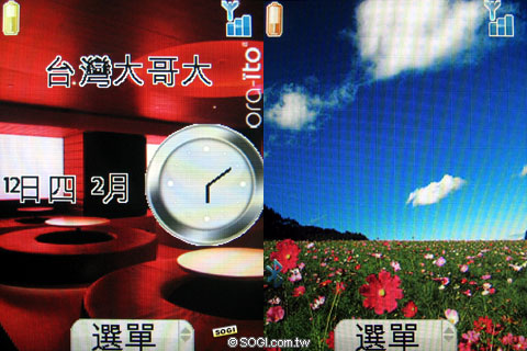 沒想到第二頁的第一張圖,就弄那麼大,意思很簡單,就是為了讓網友可以看一下它的畫質,當然這兩張圖的畫面是用相機翻拍下來的,與實際也有落差,實際上看是幾乎看不到顆粒的,而也許有人會問,這兩張桌布的內容好像不太一樣,是的,沒錯,SAGEM 可以把你的系統商名稱隱藏起來,還有同時隱藏日期、時間等,讓你的桌布更大更清晰,充份發揮它高畫質的螢幕特性!!