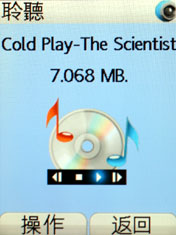 MP3 播放功能,也是 SAGEM mY X-8 的主打功能,除了可以播放之外,也可以當作鈴聲。但問題又來了,要用音樂播放器來聆聽,先到記憶卡內容將歌曲「新增至播放清單」才會在播放器的清單看到歌曲,這點又是不太友善的介面。還有一個問題就是連續播放的選項,小編也一直苦索無門。雖然它可以自動連續播放,但要看到設定選項好像會比較放心一點。而且有一個重點,就是聽音樂要專心聽,不能再做其他事!!