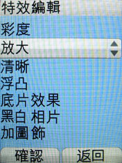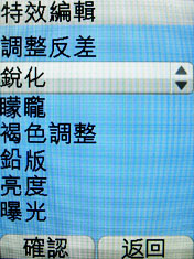 下圖右的兩張,是照相完成後的後續圖片編輯功能,共可以使用 14 種的圖片效果編輯。