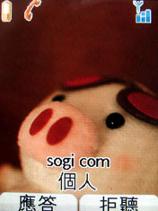 SAGEM mY X-8 可以支援全螢幕的來電大頭貼,如下圖左的小豬圖!!這點真讓人大快人心,相信許多人想要這樣的功能,看起來心情就好幾倍,假如圖片是心怡的人的話!下圖中是簡訊的內容,可以加入表情或是聲音等,也可以加入名片、行事曆,已經是將簡訊進階的應用了。