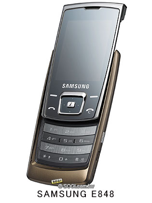機身超薄的 SGH-E848 具備全世界最薄的滑蓋設計,厚度只有 10.6 釐米,還有令人驚艷的鏡面顯示,SGH-E840 的設計美感無論在哪一方面都是手機中之翹楚,最能滿足時尚人士非凡的品味與格調。優美的滑蓋下藏著觸控按鍵,而金屬拋光的鏡面外觀更散發耀人光澤與質感,並具有冰鑽銀色、糖果粉紅、黃晶金色、和尊貴藍色等四款色彩,展現不同誘人風格。