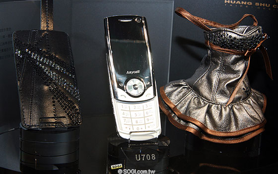 為了襯托 U708 纖薄、優雅的外型,SAMSUNG 特別邀請國內知名服裝設計師黃淑琦,為其量身打造兩款獨樹一幟的男、女專用手機套。她以其擅長的訂製服概念,運用波浪弧度裙襬、銀色緞面馬甲小禮服剪裁,構成了女用手機套的獨有風情,並以硬挺的咖啡色皮革滾邊櫬出線條,胸前的 Swarovski 水晶綴飾襯托出性感線條;男用手機套則以觸感精細的黑色皮革,呈現沉穩紳士般的翩翩風度,身前宛如流星飛劃而過的三排水晶拼綴,低調中更突顯出男性慣有的不羈個性。