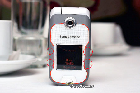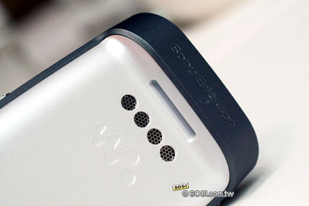 既然號稱為 W 系列手機的 W710i,便不可免俗的不能缺少揚聲器的設計,上圖便是 Sony Ericsson W710i 機身背面的立體揚聲器設計。