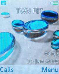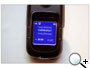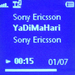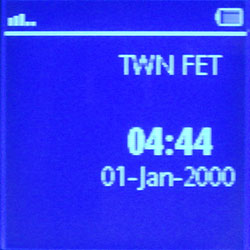 此為一般待機畫面下的外螢幕,藍底白字的螢幕,聯想到微軟的當機畫面,不過亮度和字體都很清楚,音樂播放的同時也能夠顯示清楚的曲目。
