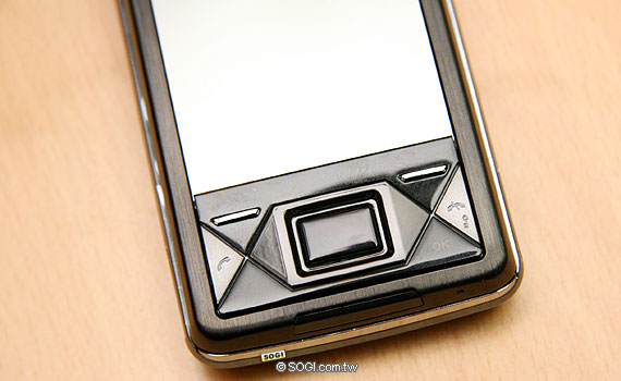 在螢幕下方的操作鍵,則採用 Windows Mobile 手機的標準配置,包含左右功能鍵、通話掛斷鍵及 OK 確認鍵,X1 也將按鍵排列特別設計,除了以 X 字型分割按鍵功能,以往常見的五向選擇鍵,則配置了有如 NB Touch Panel 的光學感應設計,只要以手指滑動即可捲動視窗的移動。
