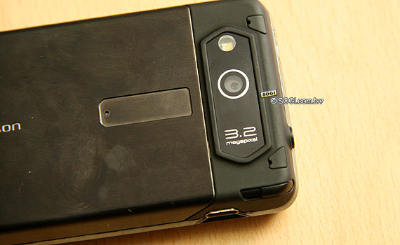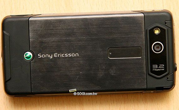 機背則使用金屬髮絲紋路設計,增加手持的質感,雖然沒有使用 SE 常見的雙面設計,但相機部份也採用了支援自動對焦機制的 320 萬畫素相機,旁邊也具有 LED 補光燈。