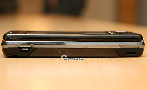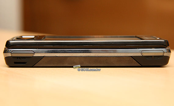 機側厚度僅 16.7mm,在微軟智慧手機中,仍算是相當薄的,在左側則配置了miniUSB 充電、傳輸孔,而不是 SE 一般的 Fast-Port,對使用者來說,miniUSB 的設計可以更便於取得使用,而不用隨身帶著專用線材;下方還有另一個快捷鍵,但目前還沒定義,無法使用,而在快捷鍵下方則是左喇叭擴音孔。