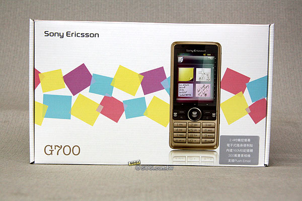 ★ G700 用透明塑膠袋包覆起來,是 SE 近期手機常見的包裝方式。