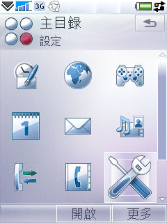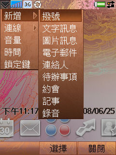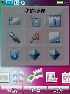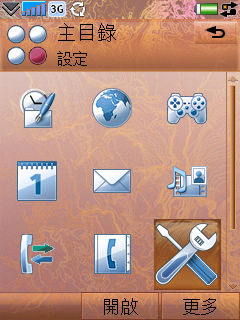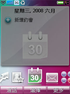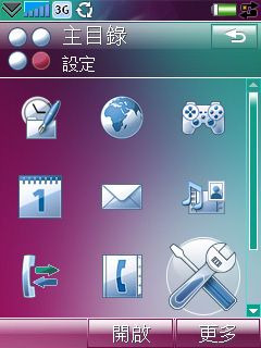 用慣一般 SE 手機的使用者,如果要跨入這個 UIQ 系列,一定會非常的不習慣,因為介面完全不一樣,也複雜了許多。在首頁的部份,可以透過左右切換,使用預設好了五項快捷功能,包括行事曆、簡訊、主目錄、我的捷徑和聯絡人等。按下首頁左上方的箭頭,則可以設定一些手機的基本功能,像是連線、音量和時間等,千萬別忽略了它。
