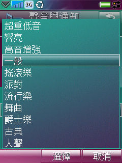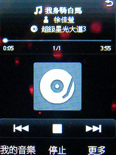 音樂介面和同為 UIQ 系列的 W960i 又不一樣,可以直接在螢幕上點選前進、道退和停止,也能顯專輯封面。EQ 的種類還滿多的,有超重低音、響亮、高音增強、搖滾樂、派對、流行樂、舞曲、爵士樂、古典、人聲等,但仍無法掩飾與以往 SE 手機一樣的問題,就是音質不夠純淨。
