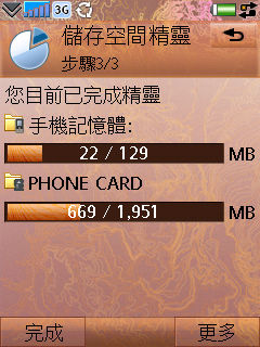 將手機接上傳輸線之後,如果是要和電腦同步,就選擇手機模式;若是要傳輸大量的影音檔,則選擇檔案傳輸模式。另外,內建的儲存空間精靈可以顯示記憶體使用狀況,同時也可以看到安裝哪些應用程式,沒有常用的建議還是解安裝比較好。