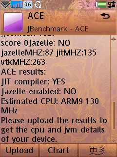ARM 與 Jbenchmark 合作開發的測試程式「arm cpu estimator(ace)」,可測試手機的處理器與 java 效能,CPU 資訊以及圖表。測試的方法非常簡單,只要將 ACE 程式傳到手機或記憶卡當中,打開程式在手機上安裝即可。安裝完成後,打開 ACE 應用程式檔案並執行,即可就可以看到如 CPU Family、時脈與 java 效能圖表等資訊。