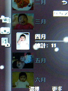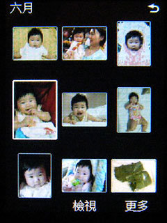 圖片可依照月份的方式來分類,一夜最多可以顯示 9 張照片,直接點選就能進入該照片,和一般 SE 的 3.5G 手機沒什麼太大的不同。