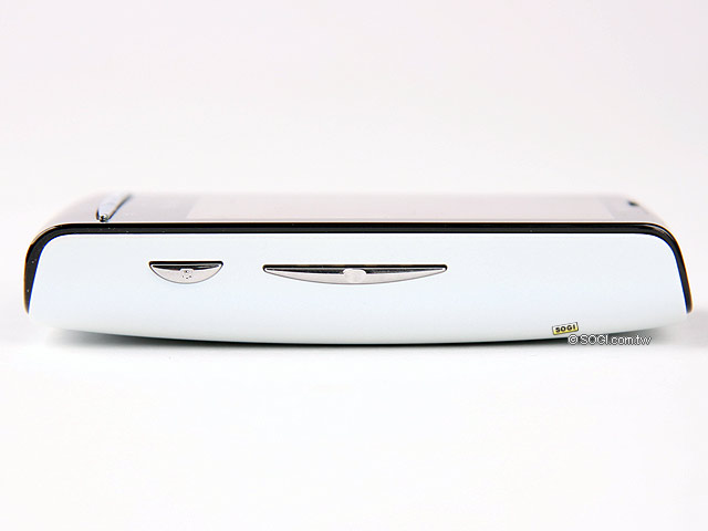 ▲Sony Ericsson XPERIA X10 mini 右側面置入音量調整 & 相機鍵,因為音量鍵的位置在中間,如果以右手操作本機還真難用拇指調整音量,感覺不是很人性化。