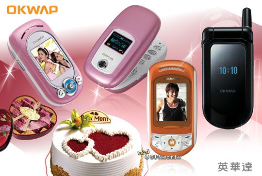 英華達 OKWAP 即日起至 5 月 14 日,提供消費者在全省 OKWAP 客服門市購買指定型號手機就能獲得折價優惠,全系列配件並享有 8 折優惠,手機消費達一定金額還可獲贈 IRIS 紅心禮盒或 8 吋心連心蛋糕,讓媽媽甜到心理。